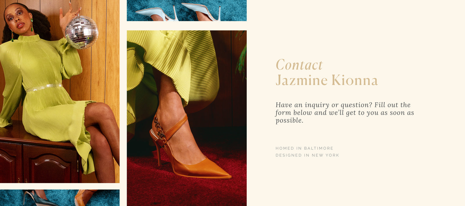 Jazmine Kionna offers luxury, contemporary shoes that are trendy, chic, and so comfortable you’ll want to stay in them all day long. Our mission is to end #highheelhell, one pump at a time.